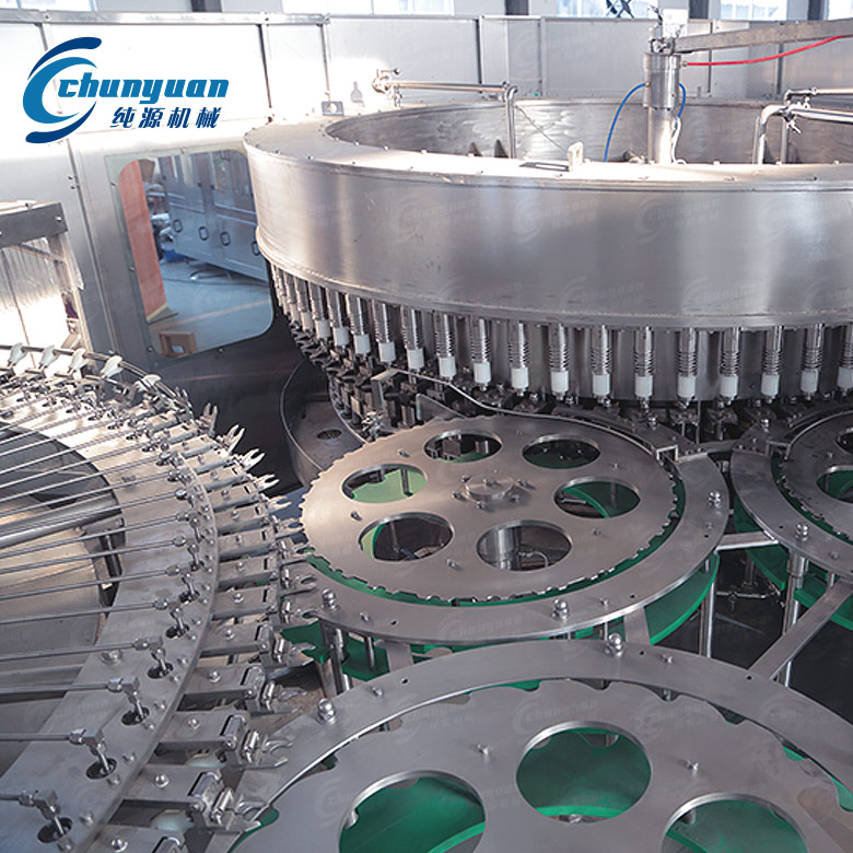瓶裝純凈水灌裝機(jī)械是瓶子的頭頸部卡在星輪形板的卡瓶板與上形板之間,由星輪傳動(dòng)帶動(dòng)卡瓶板翻滾而完成瓶子的傳遞,然后完成全自動(dòng)洗瓶、灌裝、旋蓋三大工序,純凈水灌裝機(jī)械具有瓶子磨損小、 瓶型替換簡(jiǎn)單、傳動(dòng)準(zhǔn)確平穩(wěn)、工藝流程科學(xué)等一系列特點(diǎn)。此外,水灌裝設(shè)備與液體觸摸的零部件均選用進(jìn)口優(yōu)質(zhì)不銹鋼材料或耐磨、耐臭氧、食物級(jí)工程塑料,電氣系統(tǒng)大都選用進(jìn)口元件,食物衛(wèi)生條件契合國(guó)家標(biāo)準(zhǔn),功能安穩(wěn)可靠,設(shè)備故障率低,完成全自動(dòng)化控制,并且有完善的售后服務(wù),深受國(guó)內(nèi)外用戶喜歡。