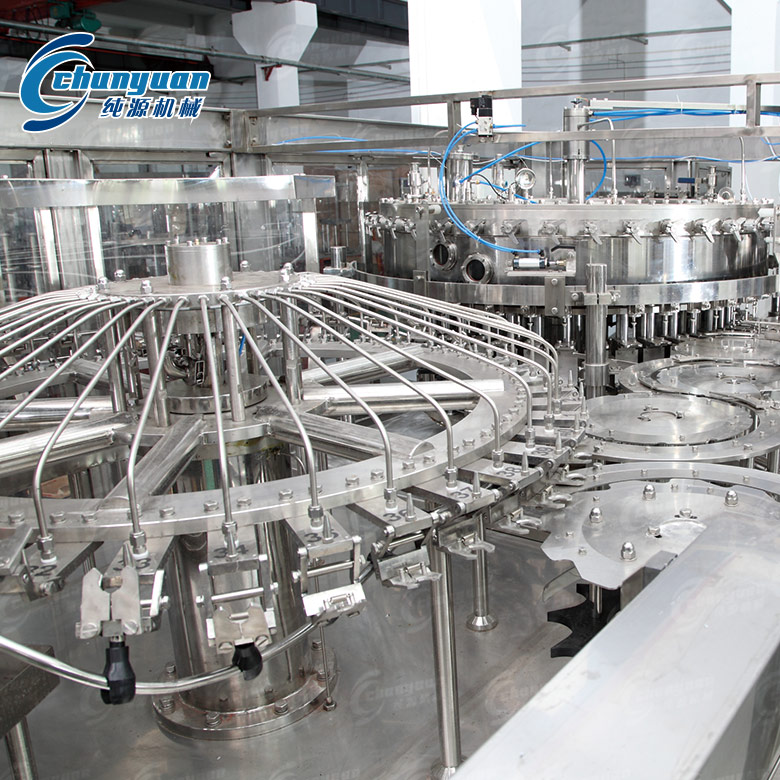 純源機械廠家生產的含氣飲料灌裝機械采用不銹鋼材料制成。含氣飲料設備具有結構合理、工藝先進、操作方便、適用范圍廣等特點,是中小型飲料廠家理想的生產流水線機組。