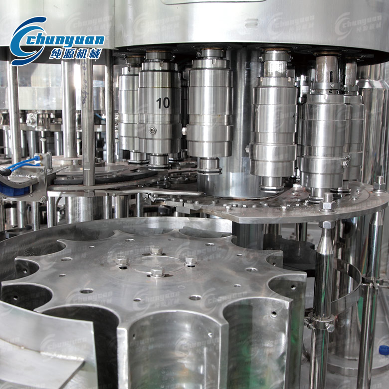 含氣飲料灌裝機是我國引進德國技術,運用等壓灌裝原理自行設計制造,實現將液體灌裝到由沖瓶機送過來的洗好的瓶子中。